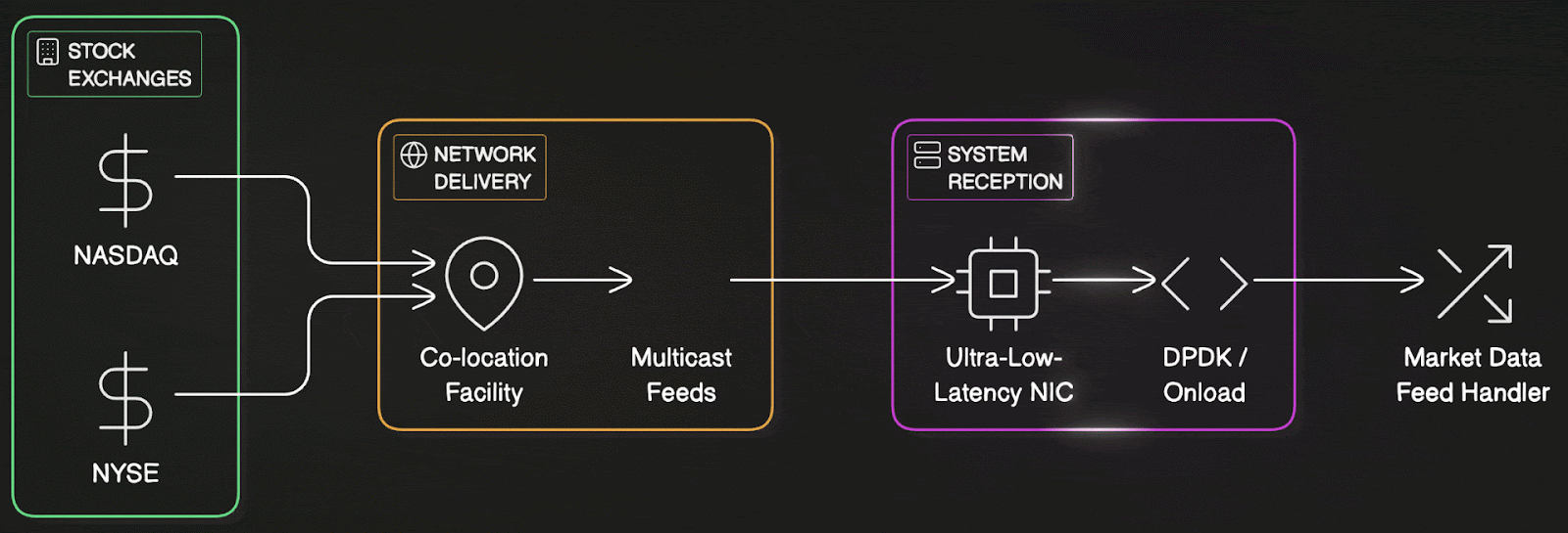 Every HFT system begins with the same fundamental challenge: how do you capture and process the firehose of market data that exchanges produce? We're not talking about the stock prices you see on financial websites—those are already ancient history by HFT standards.