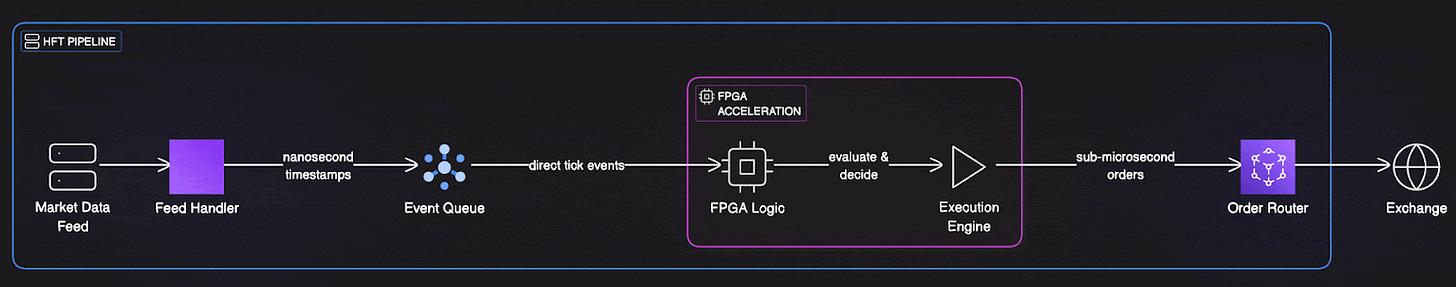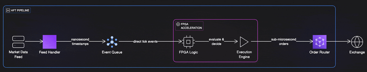 But even software has its limits. For the most time-critical decisions, many HFT firms turn to hardware acceleration through FPGAs—Field-Programmable Gate Arrays that can execute custom logic at nearly the speed of light.