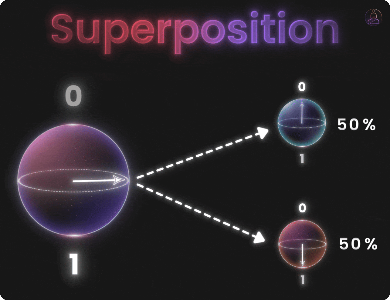 A qubit (quantum bit) is different. Instead of being locked into 0 or 1, a qubit can exist in what we call superposition. Think of it as a blend of both states at the same time.